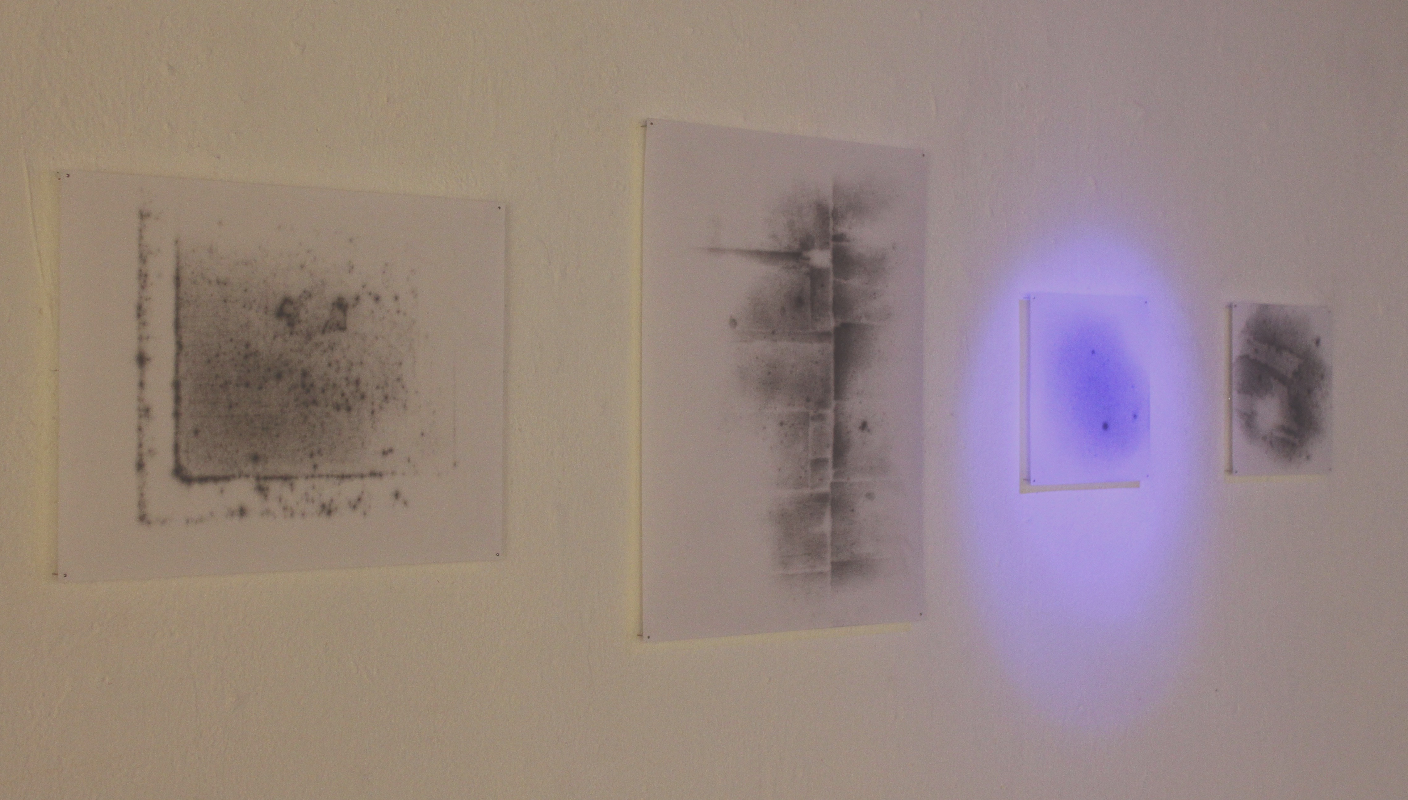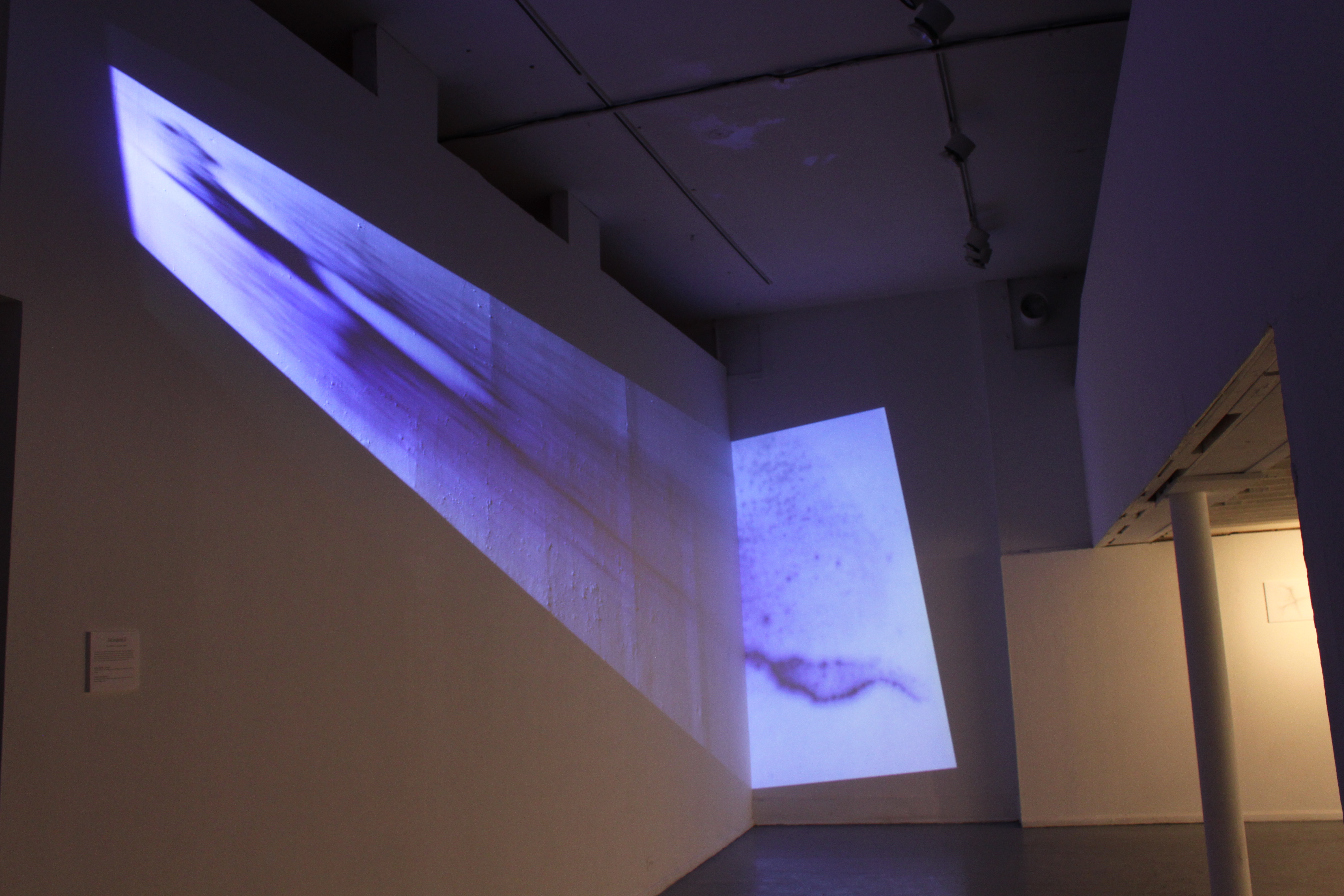 LCD projection of drawing lit with LED light – generated from gallery ceiling.